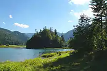Weitsee is a small lake on between Reit im Winkl and Ruhpolding with an area of 63.60 ha and a maximum depth of 9.30 m. The lake itself is separated into a shallow western and a deeper eastern part by a mountain peninsula. It is the first lake in the Dreiseengebiet (Three Lake Area) followed by the Mittersee and Lödensee. The lakes are located in the valley between the Gurnwandkopf und Dürrnbachhorn next to the Deutsche Alpenstraße B305 (German Alpine Street).