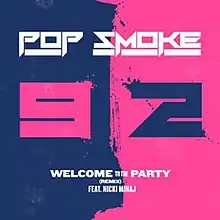 "Welcome to the Party" is a song by American rapper Pop Smoke from his debut mixtape Meet the Woo (2019). It was released on April 23, 2019, by Victor Victor Worldwide and Republic Records. The song was produced by 808Melo. The official remix for "Welcome to the Party" was released on August 15, 2019 with fellow New York rapper Nicki Minaj. A remix with British rapper Skepta was also released on August 16, 2019. Complex magazine ranked the original at number 13 on their Best Songs of 2019 list,[2] while Pitchfork magazine included it on their list of Best Rap Songs of 2019.[3]