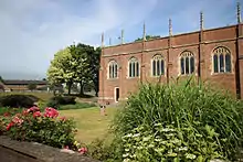 Built between 1928 and 1931 by C. H. Biddulph-Pinchard, the Grade II listed.[7] red brick building is dressed with stone and has a flat roof which is concealed behind a parapet. It is a rectangular single-cell chapel with a carved stone altar. The Chapel went through specialist restoration work in 2013 which involved the repainting of the ceiling among other maintenance tasks. This restoration was funded partly by the school's Old Wellingtonians' Association