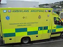 The Welsh Ambulance Services NHS Trust (Welsh: Ymddiriedolaeth GIG Gwasanaethau Ambiwlans Cymru) is the national ambulance service for Wales and one of the three NHS trusts in the country. It was established on 1 April 1998 and as of December 2018 has 3,400 staff providing ambulance and related services to the 3 million residents of Wales.[1]