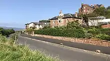 In 1792 the Glasgow merchant John Wallace, owner of extensive estates in Jamaica with sugar plantations and slaves, bought the Kelly Estate.[12] In 1793 he had a red sandstone mansion called Kelly House built on the hillside up from the road, looking over the bay (this was later painted white).[6][13] About this time the Wemyss Bay Hotel was built on the east side of the main road, near the junction to the road serving the villas;[14][15] a building is shown there on Ainslie's map.[11]