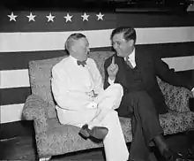 Willkie warned Republicans that only a full commitment to equal rights for minorities would woo African Americans back to the party, and he criticized Roosevelt for yielding to Southern racists among the Democrats.[110] Willkie addressed a convention of the National Association for the Advancement of Colored People (NAACP) in 1942, one of the most prominent politicians to do so up to that point. He urged integration of the armed forces, and when a violent race riot broke out in Detroit in June 1943, he went on national radio in order to criticize both parties for ignoring racial issues.[111] When the movie hearings of 1941 ended without further action, Willkie had been made chairman of the board of Twentieth-Century Fox.[96] In 1943, he worked with Walter White, executive secretary of the NAACP, to try to convince Hollywood to give blacks better treatment in films. Movie moguls promised changes, and some films featured blacks in major roles, but faced with objections from white Southerners, they reverted to giving blacks stereotyped roles after Willkie's death in 1944, such as servants.[111] After his death, the NAACP named its headquarters the Wendell Willkie Memorial Building.[112]
