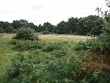 In the early 16th century overgrazing affected areas of both Bergholt and Cooks Hall Common, upon which the tenants of both manors shared.[64] In 1575-6 neither unmarried tenants nor under-tenants of Cooks Hall manor were allowed to feed more than four sheep or any cattle on that manor's common.[65] In 1587 and 1619 Bergholt Hall manor court forbade any tenant without a house and family to graze cattle on that manor's common.[66] Overseers, rangers or drivers, of that common, first recorded in 1632, were in 1651 instructed to drive the heath at least three times a year and to impound illegally grazed cattle.[67]