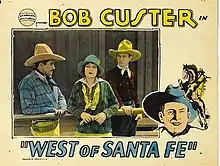 West of Santa Fe is a 1928 American silent western film directed by J.P. McGowan and starring Bob Custer, Peggy Montgomery and Bud Osborne.[1]