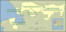 The Western Arctic National Parklands describes four United States National Park Service units in western Alaska that are managed by a single park superintendent and their staff. The western Arctic parklands are Kobuk Valley National Park, Noatak National Preserve, Cape Krusenstern National Monument, and Bering Land Bridge National Preserve. The four units have a total area of about 11,000,000 acres (4,500,000 ha) and are managed from the Northwest Arctic Heritage Center in Kotzebue, Alaska.[1] Bering Land Bridge National Preserve has administrative offices in Nome.[2]