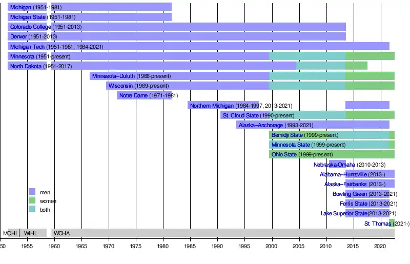 | Former names | Midwest Collegiate Hockey League (1951–53) Western Intercollegiate Hockey League (1953–58) |