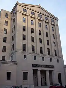 On July 28, 2014, the ABA and the Higher Learning Commission gave their approval to an affiliation between Cooley and Western Michigan University.[17] On August 13, 2014, the affiliation became official and included Cooley changing its name from "Thomas M. Cooley Law School" to "Western Michigan University Cooley Law School".[18][19][20][21] Cooley Law School then offered classes on each of Western Michigan's four campuses.[22]