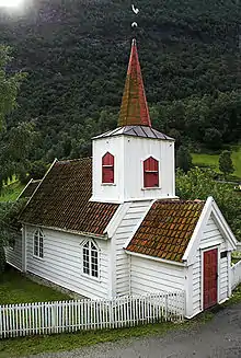 The Emigration Center of Western Norway is a memorial to those who left and to their descendants. The emigrant archives now include 96,000 names of emigrants from the two counties of Hordaland and Sogn og Fjordane up to 1924. This has been possible thanks to the work of many years by Jahn Sjursen, who has also collected books and other publications, pictures and objects related to Norwegian emigrants in the United States. He officially donated his collections to the Emigration Center at the opening in 1997. The Center continues to receive publications and objects for its collection. Via the internet we are linked to the national digital records of emigrants from Norway to the United States that have been developed by the University of Bergen and the Bergen Public Archives. The Center's Emigrant Church was originally the Brampton Lutheran Church in Sargent County, North Dakota, built by Norwegian emigrants at the turn of the 19th century. The Brampton congregation was formed 1 July 1908. and 22 June 1996, the congregation donated their fully furnished church to the Emigration Center. It was taken down, transported to Sletta and reconstructed there by volunteers from Radøy. The church was reconsecrated by the Bishop of Bjørgvin, Ole Danholt Hagesæther, 6 July 1997.[7]
