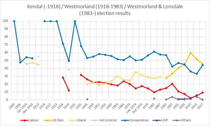 The 1918 – 1983 seat corresponded to the county of Westmorland even after the abolition of the administrative county in 1974.