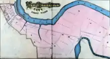 1876 map of New Brunswick's First Ward, showing Weston's Mill at the bend in Lawrence Brook.