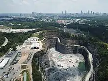 On December 29, 2017, outgoing mayor Kasim Reed unveiled plans for phase one of the park's construction.[6] The first phase will take about 24 months to complete. The cost of the first phase, which has already been approved and funded by the Atlanta City Council, will be approximately $26.5 million.[7] Phase one includes a gateway to the park, a "grand overlook" of both the quarry and the Atlanta skyline, and pedestrian connections to the Proctor Creek Greenway.[8] The following year, Mark Teixeira and a development team announced plans to build a mixed-use development, Quarry Yards, adjacent to the park.[9]