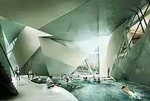 The Westside Shopping and Leisure Centre, on the outskirts of Bern, Switzerland, is a multi-use facility with shops, restaurants, a swimming pool, conference spaces, residences, a hotel, fitness centres, and a cinema. It was designed by international architect Daniel Libeskind and completed in October 2008.[1]