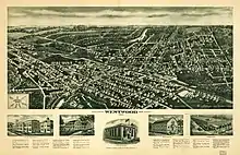 Lincoln High School was constructed around the turn of the 20th century, which also saw the introduction of electricity, telephones, and automobiles to the town. Underwood & Underwood Stereoscope Company opened a plant during the first decades of the 20th century, and many congregations established their first chapels, which were replaced in later years as the congregations grew in numbers and wealth.[33] Following a typical pattern of development throughout the 20th century, the results are a mature railroad suburb almost covered with housing units, commercial, municipal and ecclesiastical buildings. The borough still retains the open space of the triangular park at its center.[31]