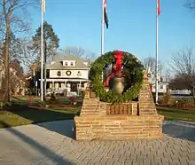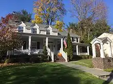 The Lenni-Lenape Native Americans inhabited this part of the state and shared it with the transient hunters and trappers until the permanent settlers began to enter in mid-18th century.[29] In the early 19th century, the area that would later become Westwood was within the larger political boundaries of Harrington Township, which had been established by royal charter in 1775. In 1840, the western half of Harrington Township became Washington Township, with the Hackensack River as the dividing line.[25] Washington Township was an agrarian region with isolated farmsteads. Early families, including the Hoppers and Ackermans, are buried at the Old Hook Cemetery. An 18th-century mill was situated at the dammed stream near the intersection of today's Mill Street and First Avenue. This mill was on an important east west pathway and was the first on Musquapsink Brook.[30] The mill was largely destroyed after a fire set by an arsonist and was dismantled in 1910.[31]