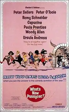 What's New Pussycat? is a 1965 French-American comedy film directed by Clive Donner, written by Woody Allen in his first produced screenplay, and starring Allen, Peter Sellers, Peter O'Toole, Romy Schneider, Capucine, Paula Prentiss, and Ursula Andress.