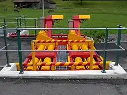 A wheel washing system is a device for cleaning the tires of trucks when they are leaving a site, to control and eliminate the pollution of public roads.[1] The installation can be made in or above the ground for either temporary or permanent applications. There are two types of wheel washing systems: roller and drive-through systems.