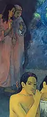 The painting is notable for its enigmatic subject and atmosphere. Some scholars have attributed these qualities to personal conflicts that Gauguin experienced while creating this artwork.[2]