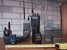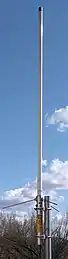 A whip antenna is an antenna consisting of a straight flexible wire or rod. The bottom end of the whip is connected to the radio receiver or transmitter. The antenna is designed to be flexible so that it does not break easily, and the name is derived from the whip-like motion that it exhibits when disturbed. Whip antennas for portable radios are often made of a series of interlocking telescoping metal tubes, so they can be retracted when not in use. Longer ones, made for mounting on vehicles and structures, are made of a flexible fiberglass rod around a wire core and can be up to 35 ft (10 m) long. The length of the whip antenna is determined by the wavelength of the radio waves it is used with. The most common type is the quarter-wave whip, which is approximately one-quarter of a wavelength long. Whips are the most common type of monopole antenna, and are used in the higher frequency HF, VHF and UHF radio bands. They are widely used as the antennas for hand-held radios, cordless phones, walkie-talkies, FM radios, boom boxes, and Wi-Fi enabled devices, and are attached to vehicles as the antennas for car radios and two-way radios for wheeled vehicles and for aircraft. Larger versions mounted on roofs, balconies and radio masts are used as base station antennas for amateur radio and police, fire, ambulance, taxi, and other vehicle dispatchers.