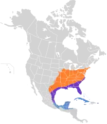 Populations on the US Gulf coast and further south are resident, but most North American birds migrate south in winter.