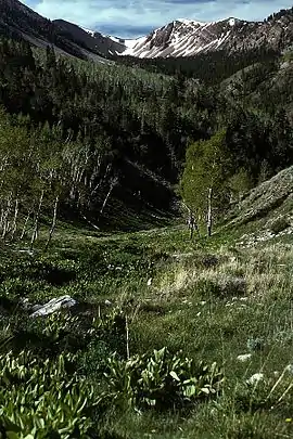 In the southeastern part of the county within Great Basin National Park lies 13,065 ft (3982 m) Wheeler Peak, the tallest independent mountain within Nevada and the second-highest point within the state (the highest point being Boundary Peak).[4] It is also the most topographically prominent peak in the county and the second-most prominent peak in Nevada (after Mount Charleston).