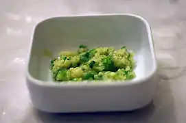 Geung yung, a condiment made of minced ginger, scallions, and garlic