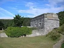 It was completed in 1893 at a cost of £25,991.[11] but The 6-inch guns did not stay in place very long and were removed in 1897. Despite recommendations for rearming during the First World War, the RMLs remained the sole armament until the battery was fully disarmed in 1920. During World War II, the battery was used for radar training, as part of the Coast Artillery Training Centre, Plymouth.[12] It was released by the military in 1951 and became a caravan park. Although the ditch has been filled-in, many of the original features can still be seen.