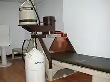 In 1950, Leonidas D. Marinelli developed and applied a low-level gamma-ray Whole Body Counter to measure people who had been injected with radium in the early 1920s and 1930s, contaminated by exposure to atomic explosions, and by accidental exposures in industry and medicine[3] [4] The sensitive methods of dosimetry and spectrometry Marinelli developed obtained the total content of natural Potassium in the human body.[5] [6] [7][8] [9][10] Marinelli's Whole Body Counter was first used at Billings Hospital at the University of Chicago in 1952.[11]