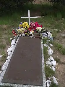A roadside memorial plaque listing the names of the victims is located near the Colorado crash site, adjacent to westbound Interstate 70, at Dry Gulch at milepost 217 (39.6965°N 105.8736°W), about two miles (3 km) east of the Eisenhower Tunnel.[19] A trail to the wreck site via Dry Gulch is 0.4 miles past the memorial off exit 216. Detailed directions and photos can be found on Mountainouswords.com.