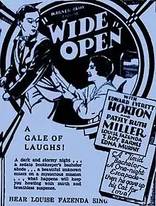 Wide Open is a 1930 American romantic comedy film directed by Archie Mayo, starring Edward Everett Horton and Patsy Ruth Miller, and featuring Louise Fazenda, T. Roy Barnes and Edna Murphy. Released by Warner Bros., it is based on the 1924 novel The Narrow Street by Edward Bateman Morris.