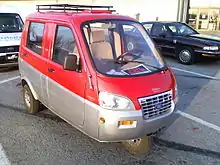 The WF-120V is a two-seat coupe manufactured by Shandong Huoyun Electric Car Co., Ltd, located in Zibo, China.[5] The WF-72 V is a four-seat sedan manufactured by Shandong Pioneer Motorcycle Co., Ltd.[6] The WF-120 is powered by an 8.5 kilowatt, 120 volt AC motor. The WF-72 V is powered by an 8.5 kilowatt, 72 volt, AC motor. The styling of the WF-120 V seems to be a copy of the Smart, including lines in quarter panels where the Smart doors are supposed to close.[7] This appears to be a liability and the owner of the Smart design (Mercedes)[8] may force the manufacturer to stop import or take other legal action. As they are registered as neighborhood electric vehicles, both are programmed by the manufacturer not to exceed 25 miles per hour but can be adjusted to run up to 50 miles per hour.[9][10]