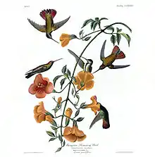 Hummingbird species demonstrate adaptation with bill shape and size. Certain species have specialized bills that allow them to feed from the flowers of certain species of plants. The relationship between the hummingbird and plant is mutualistic because the hummingbird transfers pollen between plant individuals in exchange for nectar. Because different species of hummingbirds are adapted to specific plants, [pollination] of the right plants with the right pollen is ensured.[17] The mangrove hummingbird is endemic to Costa Rica and specializes in feeding from the tea mangrove plant.[5][19]
