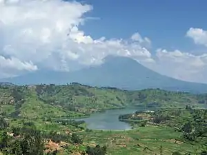 The greatest diversity of large mammals is found in the three National Parks, which are designated conservation areas.[10] Akagera contains typical savanna animals such as giraffes and elephants,[11] while Volcanoes is home to an estimated one third of the worldwide mountain gorilla population.[12][13]