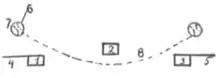 "White stood upon the left of the fence at one end so that his hand could not possibly pass beyond the straight line, and pitched the ball so that it passed to the right of the middle post. This it did by three or four inches, but curved so much that it passed the third post a half foot to the left. The diagram on page 403 [reproduced at right] will illustrate the test."[27]