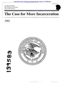 Barr said in the report, "The benefits of increased incarceration would be enjoyed disproportionately by black Americans".[50] In the report, Barr approvingly quoted New Mexico Attorney General Hal Stratton, "I don't know anyone [who] goes to prison on their first crime. By the time you go to prison, you are a pretty bad guy."[51] Barr's report influenced the Violent Crime Control and Law Enforcement Act of 1994, which aimed to increase the incarceration rate.[6]