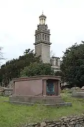 His self-designed tomb—a massive sarcophagus of polished pink granite with bronze armorial plaques—now stands on a hillock in the cemetery surrounded by an oval ditch. On one side of his tomb is a quotation from Vathek: "Enjoying humbly the most precious gift of heaven to man—Hope"; and on another these lines from his poem, A Prayer: "Eternal Power! Grant me, through obvious clouds one transient gleam of thy bright essence in my dying hour."