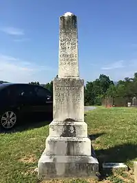 Clayton died on March 11, 1915, at his residence in Keyser at the age of 84, following an illness.[13][35][36] Clayton was survived by his sister Clara Clayton, and his nephew Charles T. Clayton of Washington, D.C., who was a private secretary to David John Lewis, U.S. House Representative from Maryland. In his obituary in The Pittsburgh Post, Clayton was described as the "nestor" of the Mineral County bar.[13][14] He was interred at Indian Mound Cemetery in Romney near his wife, Isabella.[35] He shares an obelisk gravestone with his brother Charles T. Clayton and sister-in-law Laura D. Clayton.[35]