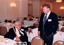 In preparation for major visits abroad and in the Oval office, as well as visits outside the United States, Martin would sometimes do the first draft of the President's weekly radio address in close coordination with Presidential chief speech writer Ben Elliott. Three of these addresses were especially important. First, Reagan's radio address in 1984 following his first meeting with a Soviet leader (Foreign Minister Gromyko) after four years in office.[15] This widely quoted radio address, highlighted in headlines on the front page of the Washington Post set the agenda and tone for the subsequent meeting with Soviet leader Gorbachev one year later. Reagan recognized Martin's role in its drafting in the following letter.[16] Second, Martin prepared a radio address describing the G-7 Economic Meeting chaired by Margaret Thatcher in 1984.[16] And third, he prepared a radio address in 1983 describing the President's visit to Japan and Korea.[16]