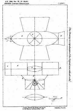 "The flying machine is propelled into the air by two reversible fans revolving horizontally. When sufficient height is gained, wings are spread and tilted by means of a lever, causing the machine to float onward and downward. When low enough the lever is reversed causing it to rise upward & onward. When required to stop it the wings are tilted so as to hold against the wind or air and lowered by the reversible fans. The steering is done by a helm fitted to front of machine."
