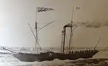 Having only recently retired he was enticed back to sea the following year to assist in the establishment of a small shipping line in his native Ramsey.[3] The company had built a steamer which they called the Manx Fairy and Capt. Gill, at the special request of the shareholders, took command of her on her first trip "in order that her steaming and sailing qualifications might be fairly tried under a commander of such great experience of coasting steam navigation."[3] This was to be Capt. Gill's last triumph, the Manx Fairy steaming out of Liverpool at the same time as the Isle of Man Steam Packet's new flag ship Mona's Queen, which she beat to Douglas by 8 minutes in a passage time of 5 hours 30 minutes.[3]