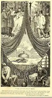 Seward originally supported the Regency, but by 1824 had broken from it, concluding that it was corrupt.[16] He became part of the Anti-Masonic Party, which became widespread in 1826 after the disappearance and death of William Morgan, a Mason in Upstate New York; he was most likely killed by fellow Masons for publishing a book revealing the order's secret rites.[17] Since the leading candidate in opposition to President John Quincy Adams was General Andrew Jackson, a Mason who mocked opponents of the order, Anti-Masonry became closely associated with opposition to Jackson, and to his policies once he was elected president in 1828.[18]