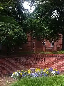 The institution that eventually became William Peace University was founded in 1857 as Peace Institute by a group of men within the Presbyterian Synod of North Carolina. The leading donation of $10,000 (equivalent to $274,400 in 2019) came from William Peace, a prominent local merchant and a founding member of the First Presbyterian Church of Raleigh.[2] Peace is believed to have been in the first class of the University of North Carolina,[3] and was a longtime proponent of education as a benefactor of Raleigh Academy, a school primarily for boys.[4]