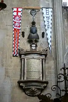 As a native of the West Country, Sir William Penn is buried in the church of St Mary Redcliffe in Bristol. His helm and half-armour are hung on the wall, together with the tattered banners of Dutch ships that he captured in battle. His portrait by Lely, part of the Flagmen of Lowestoft series, is in the Painted Hall at Greenwich. After his death, his son, William, accepted the grant of land in the American colonies in lieu of money owed by the Crown to his father. William Penn had wanted to call the land 'New Wales', which was objected to by the Secretary of State, Privy Council member and Welshman Leoline Jenkins. Penn instead put forward the name "Sylvania". The Council then chose to tweak this new name a bit by adding the prefix "Penn" to honour the late Admiral, William Penn's father. After some protestation from William Penn, he reluctantly accepted it.[9]