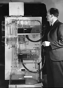 Alban William Housego "A. W." "Bill" Phillips, MBE (18 November 1914 – 4 March 1975)[1] was a New Zealand economist who spent most of his academic career as a professor of economics at the London School of Economics (LSE). His best-known contribution to economics is the Phillips curve, which he first described in 1958. He also designed and built the MONIAC hydraulic economics computer in 1949.
