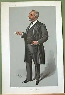 Pirrie was educated at the Royal Belfast Academical Institution before entering Harland and Wolff shipyard as a gentleman apprentice in 1862. Twelve years later he was made a partner in the firm, and on the death of Sir Edward Harland in 1895 he became its chairman, a position he was to hold until his death. As well as overseeing the world's largest shipyard, Pirrie was elected Lord Mayor of Belfast in 1896, and was re-elected to the office as well as made an Irish Privy Counsellor the following year. He became Belfast's first honorary freeman in 1898, and served in the same year as High Sheriff of Antrim[3] and subsequently of County Down. In February 1900 he was elected President of the Chamber of Shipping of the United Kingdom, where he had been vice-president the previous year.[4] He helped finance the Liberals in Ulster in the 1906 general election, and that same year, at the height of Harland and Wolff's success, he was raised to the peerage as Baron Pirrie, of the City of Belfast.[5] The following year he was appointed Comptroller of the Household to the Lord-Lieutenant of Ireland, and in 1908 he was appointed Knight of St Patrick (KP).