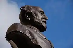 Pirrie built the Temple of the Four Winds near the Devil's Punchbowl, Hindhead. The octagonal plinth still remains.[8][9] Lord Pirrie's nephew, Thomas Andrews, died on the Titanic. Pirrie himself died on 7 June 1924, at the age of 77 of bronchial pneumonia, at sea off Cuba, whilst on a business trip to South America.[1][10] His body was brought from New York on the White Star Line's RMS Olympic,[11] and was buried in Belfast City Cemetery.[12] The barony and viscountcy died with him. Lady Pirrie died on 19 June 1935.[1] A memorial to Pirrie was unveiled in the grounds of Belfast City Hall in 2006.