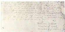 Some payments for Schaw's building work, at Falkland Palace and Stirling Castle are documented by exchequer vouchers in the National Records of Scotland.[12] A record of the building work at the Palace of Holyroodhouse he supervised in 1599 survives. The works involved masons, slaters, plumbers, and joiners making repairs to the court and the king's kitchens, the steeple and clock, and the King's billiard table, and other alterations to the palace. Schaw signed off the account weekly with his name, or as "Maistir of Wark".[13] On 8 July 1601, James VI sent William to consult with Master John Gordon on the construction of a monument to the King's rescue from the Gowrie House conspiracy the previous year. James VI wrote to Gordon that William would "conferre with yow thairanent, that ye maye agree upon the forme, devyse, and superscriptionis."[14]