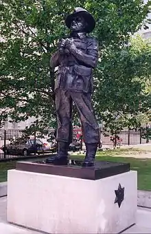 A statue of Slim on Whitehall, outside the Ministry of Defence, was unveiled by Queen Elizabeth II in 1990. Designed by Ivor Roberts-Jones, the statue is one of three British Second World War military leaders (the others being Alan Brooke and Bernard Montgomery).[92]