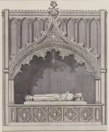 He died on 22 June 1366.[34] In many sources it is stated that he was buried in the Holy Trinity Church, Hull, at the tomb commonly known as the de la Pole tomb.[n 5] Fryde and others state that his final interment was with his wife Katherine (d.1382) in the church of the Carthusian monastery in Hull, which was not established until 1377.[35][36]