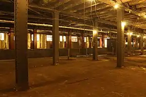 The Williamsburg Bridge Trolley Terminal, also called the Essex Street Trolley Terminal or Delancey Street Trolley Terminal,[1][2] was a trolley terminal located underground adjacent to the Essex Street subway station in the Lower East Side of Manhattan. Passenger trolley service operated through the terminal from 1908 until 1948 when trolley service over the Williamsburg Bridge ended. The station was constructed with balloon loops for turning around streetcars after they crossed over the Williamsburg Bridge to send them back to Brooklyn.[3][4][5]
