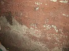 Over the same period, his workers also excavated a series of brick-arched tunnels and vaults at various depths within the sandstone. They covered a wide area, extending to the boundaries of Williamson's lease and possibly beyond. Stonehouse, who traversed parts of the tunnels in 1845, described the excavations as a labyrinth of "vaulted passages [...] pits deep, and yawning chasms",[4] including a "fearful opening" beneath Grinfield Street with two "complete four-roomed houses" in the side of it connected by a spiral passage.[5] This apparent tunnel-building activity continued until Williamson's death in 1840.[6] In August 1867 the Liverpool Porcupine described the tunnels as being "a great nuisance" because drains ran straight into them, in one place creating a cess pool full of offensive water 15 feet (5 m) deep, and they were being used for dumping refuse,[7] including down chutes built into the buildings above for the purpose.